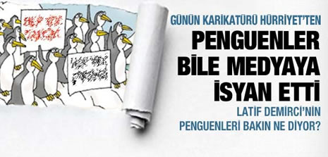 Hürriyet çizeri Latif Demirci de o tepkileri köşesine taşıdı. Demirci'nin Penguenleri, kutuplardan Taksim direnişine destek verdiler.
