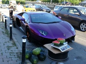 Beyoğlu Hacı Hüsrev Mahallesi Piyalepaşa Bulvarı üzerinde dün yaşanan olayda yabancı uyruklu bir kişinin Lamborghini marka araçla 5 liraya karpuz satması gündem oldu. İstanbul Trafik Denetleme Şube Müdürlüğünce yapılan çalışmada lüks aracını farklı amaçla kullanan o kişi belirlendi. Emniyete getirilen araç sahibinin İranlı M.H.F. olduğu anlaşıldı.