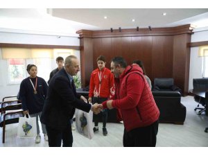 Ziyaretin sonunda Başkan Atabay, genç sporculara içerinde hediyelerin olduğu çantaları takdim etti.