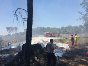 Antalya'nın Manavgat ilçesinde çıkan orman yangınında, 0.4 hektar kızılçam ormanı yandı.