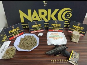 Manisa İl Emniyet Müdürlüğü Turgutlu Narkotik Suçlarla Mücadele Grup Amirliği görevlileri tarafından ilçedeki bir ikamette yapılan aramada 91,40 gram esrar maddesi, 52 adet ecstasy, 26,05 gram skunk maddesi, 11,42 gram sentetik kannabinoid, 1,58 gram metamfetamin maddesi, 1 adet tabanca ve 8 adet fişek ele geçirildi. Konuyla ilgili E.C. (46) ve N.Ö. (29) isimli 2 şüpheli şahıs, "Uyuşturucu veya uyarıcı madde imal ve ticareti yapmak" suçundan gözaltına alınırken, şüpheliler sevk edildikleri adli makamlarca tutuklandı.