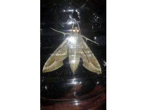 Van'da bir aracın plakası üzerinde bulunan kelebeğin sphingidae (mekik kelebeği) türünün daphnis nerii (atmaca güvesi) olduğu belirlendi.