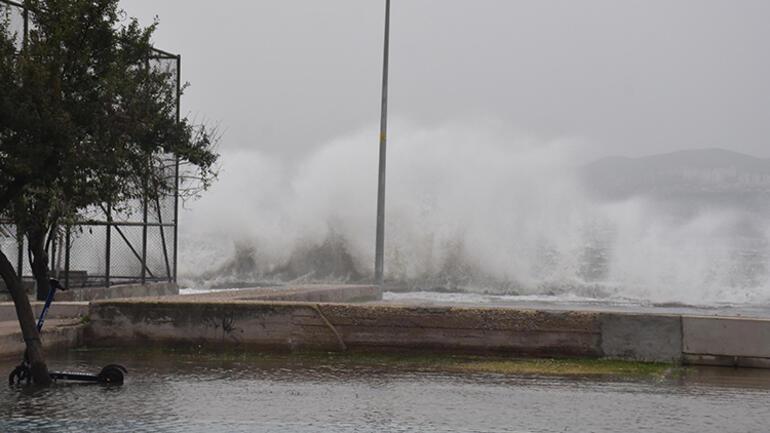 İzmir’deki fırtına şiddetini giderek artırıyor. Dalga boyu oldukça yüksek seviyelere ulaştı. Karşıyaka ilçesinde deniz taştı, yol adeta göle döndü. Çift şeritli yolun bir yönü sularla kaplandığını söyleyebiliriz. Belediye ekipleri suları temizlemek için çalışıyor. Bazı ev ve iş yerlerini de su bastı.