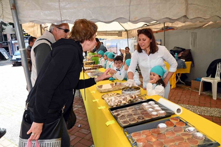 Depremzede çocuklara kitap ve kırtasiye yardımında bulunmak maksadıyla harekete geçen Manavgat Belediyesi Çolaklı Kreş ve Gündüz Bakımevi'nin Şirinler Sınıfı öğrencileri, Cumhuriyet Meydanı'nda hayır panayırı düzenleyerek minik elleriyle satış yaptı.