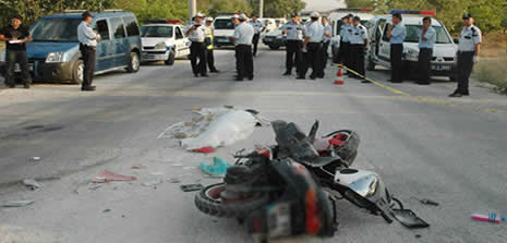 Yağmurun etkisiyle kayganlaşan yolda yaklaşık 10 metre sürüklenen motosikletten düşen Kiremitçi, yol ortasında yığılıp kaldı.