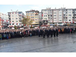 Çorlu'da Atatürk Meydanı'nda yer alan Atatürk Anıtı önünde düzenlenen törende ilk olarak Çorlu Kaymakamlığı, 5. Kolordu ve Garnizon Komutanlığı ile Çorlu Belediye Başkanlığına ait çelenkler anıta sunuldu. Saat 09.05'de ise siren sesleri Çorlu'nun cadde ve sokaklarında yankılandı. Trafikte seyreden sürücüler araçlarından inerek saygı duruşunda bulundu.