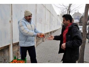 Nevşehir Spor maçını izlemeye gelen vatandaşlar ise maç öncesi dağıtılan mandalinaları maç izlediği sırada yemeleri dikkatlerden kaçmadı.