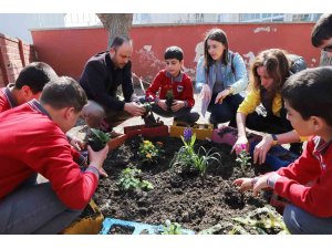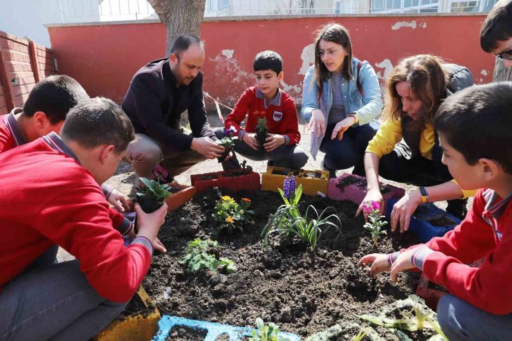 Öğrencilerden Melike Yavuz da, "Fen Bilimleri Öğretmeni Esra Doğan'ın öncülüğünde arkadaşlarımızla birlikte, okul bahçemize rengarenk çiçekler ektik. Çok güzel oldu. Ektiğimiz çiçeklere hep birlikte bakacağız" dedi.