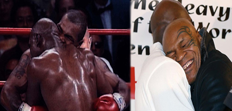 Boks efsanesi kötü çocuk Mike Tyson, yıllar önce ringde kulağını ısırarak kopardığı rakibi Evander Holyfield ile yeniden bir araya geldi. hatta bir araya gelmekle kalmadı, ezeli rakibine sıkı sıkı sarıldı! 46 yaşındaki Tyson, 'Evander'i çok sevdiğini ve hayatının sonuna kadar onunla arasında bir bağ olacağını' söyledi. 1997 yılında gerçekleşen 'ısırma' olayının ardından Tyson'ın ringe çıkması yasaklanmıştı.
