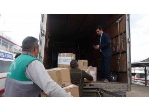 Marmaris Gümrüklü Limana gelen gemiyi Marmaris İlçe Sağlık Müdürü Dr.İmran İnce, Marmaris Kaymakamlığı Sosyal Yardımlaşma Vakfı ve İlçe Tarım Müdürlüğü ekipleri karşıladı. Ekipler gıda ve ilaç kolilerini açıp teker teker kontrol ettikten sonra tekrar koliledi. Orman İşletme Müdürlüğüne bağlı orman işçileri de gelen 80 koliyi kamyona yükledi.