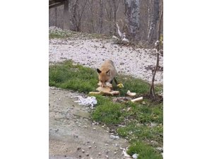 Bursa'nın İnegöl ilçesinde doğaya çıkan hayvanseverler, yanlarına gelen tilkiyi beslediler. O anlar amatör kameraya yansıdı.