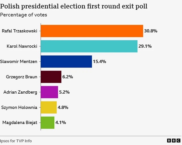Polonya'da anketlerin aksine, liberal aday Rafal Trzaskowski ile devlet başkanı ve muhafazakar aday Andrzej Duda arasındaki yarış başa baş sonuçlandı. Resmi olmayan sonuçlara göre, Duda oyların yüzde 43,5'ini alırken, Trzaskowski yüzde 41,5'te kaldı. Aradaki yüzde 2'lik fark, seçim öncesi tahminlerin oldukça altında gerçekleşti. Seçimlerin en dikkat çekici sonuçlarından biri ise aşırı sağcı aday Krzysztof Bosak'ın yüzde 15,4 oy alarak üçüncü sırada yer alması oldu. Bu sonuç, aşırı sağın Polonya siyasetindeki yükselişini gözler önüne serdi.