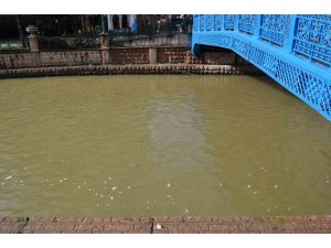 Eskişehir'i dünden beri etkisi altına alan ve zaman zaman sağanağa dönen yağmur sonrasında şehrin merkezinden geçen Porsuk Çayı'nın rengi kahverengine döndü.