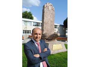 Amasya Üniversitesi Rektörü Prof. Dr. Metin Orbay, üniversite bahçesine Bilge Kağan Anıtı'nın birebir benzerini diktirdi.