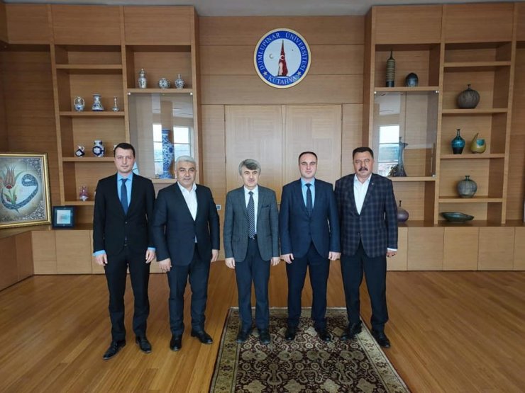Kaymakam İsmail Tosun ve Belediye Başkanı Fatih Çalışkan'ın aralarında bulunduğu Hisarcık heyeti Kütahya Dumlupınar Üniversitesi Rektörü Kazım Uysal'ı ziyaret etti.