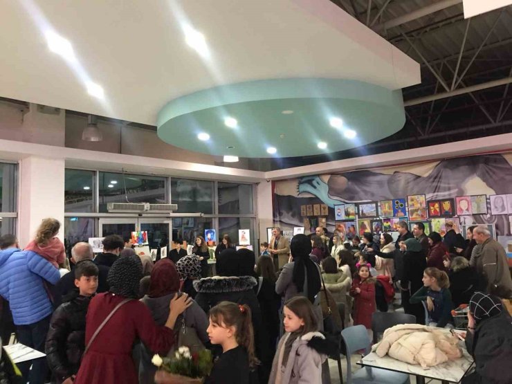 Derince'de 5 ile 18 yaş aralığındaki yaklaşık 100 öğrencinin çizdiği resimler, bir alışveriş merkezinde sergilendi.