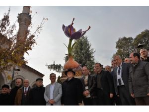 Karabük'ün Safranbolu ilçesinde safran bitkisi heykeli açıldı.