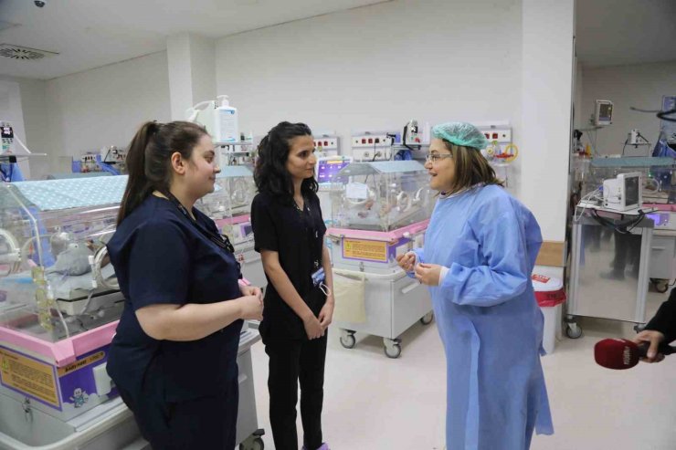 Gaziantep Büyükşehir Belediye Başkanı Fatma Şahin, 14 Mart Tıp Bayramı dolayısıyla yıkıcı deprem sonrası afetzedeler için fedakârca çalışan hemşireleri ziyaret etti.