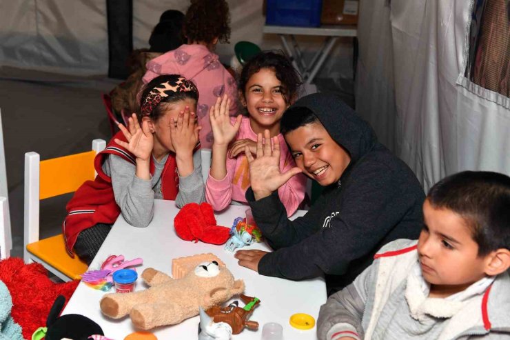 Okul öncesi dönem yaş grubu için de kreş hizmetinin verildiği çalışma hakkında bilgi veren Mersin Büyükşehir Belediyesi Hatay Koordinatörü Selçuk Şahutoğlu, "Ülkemizde yaşanan deprem felaketinden sonra, Büyükşehir Belediyesi olarak Hatay'da bin 500 kişilik bir çadır kent kurduk. Mersin Büyükşehir Belediyesi olarak bu noktada okul öncesi çocuklarımızın da yanında olduk ve bir kreş açtık. Burada çocuklarımıza sosyal faaliyetlerin yanı sıra, oyun becerilerini geliştirme adına eğitimler de veriyoruz. Aynı zamanda Mersin'de yapmış olduğumuz etüt merkezlerinin bir benzerini Hatay çadırkentimizde kurarak, eğitimden uzak kalan öğrencilerimizin hem sınavlara hazırlanması, hem de derslerinden geri kalmamaları adına bir etüt hizmeti sunmaktayız" ifadelerini kullandı.