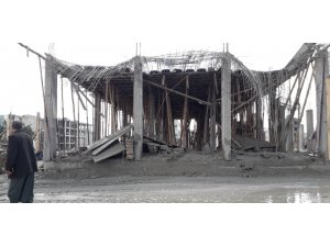 Şanlıurfa'da yeni yapılan bir dükkanın üst betonu döküldüğü sırada çökme meydana geldi.
