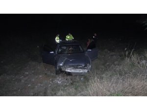 Kırıkkale'de meydana gelen trafik kazasında şarampole devrilen otomobildeki 2 kişi, emniyet kemeri sayesinde kazayı ucuz atlattı.