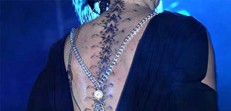 Konserinde sırtını açıkta bırakan bir kıyafet giyen Ferah'ın "omurilik" dövmesi ilgi çekti.