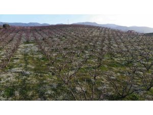 Aydın'da bahalar aylarının gelmesi ile meyve bahçeleri çiçek açarken, papatyalarla kaplı şeftali bahçelerinde oluşan görsel şölen mest etti.
