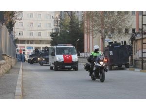 Mardin'in Nusaybin ilçesinde şehit düşen Özel Harekat Polisi Oğuzhan Günaydın'ın naaşı, düzenlenen cenaze töreninin ardından memleketi Malatya'ya uğurlandı. Törenin ardından Türk bayrağı açan bir grup vatandaş, "Şehitler ölmez, vatandaş bölünmez" sloganı atarak yürüdü.