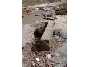 Adıyaman'ın Sincik ilçesinde yağışlardan dolayı oluşan sel suları, köyleri bir birine bağlayan köprüye zarar verdi.