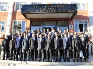 Kadınhanı Faik İçil Meslek Yüksekokulu'nda düzenlenen toplantıya, Selçuk Üniversitesi Rektörü Prof. Dr. Mustafa Şahin, Rektör Yardımcıları Prof. Dr. Abdullah Topcuoğlu, Prof. Dr. Ahmet Kağan Karabulut, Prof. Dr. Hüseyin Kara ve Prof. Dr. Mehmet Okka, dekanlar, müdürler ve öğretim üyeleri katıldı.