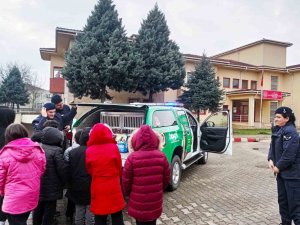 Çocuklar merak ettiklerini sordu, jandarma abi ve ablaları cevap verdi.
