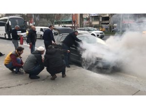 Yangının büyümesi üzerine vatandaşlar araçlarına giderek maşrapa, damacana, kova, fırça ve yangın tüpleri aldı. Kaputun altına deliklerden müdahale etmeye başlayan vatandaşlar önce maşrapayla su döktü. Ardından da yangın tüpleriyle dört bir yandan söndürme çalışmalarına başladı. Ancak bir türlü dinmeyen yangın için vatandaşlar bu kez damacanayla su getirdi. Kovaya döktükleri su ve yangın söndürme tüpüyle aynı anda müdahale eden vatandaşlar ilginç görüntüler oluşturdu. Çevredeki diğer vatandaşlar ise bir yandan çalışmaları izlerken diğer yandan da cep telefonuyla olanı biteni görüntüledi.