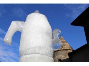 ERZURUM (İHA) – Erzurum'da, sanatçıların tarihi yerleri tasvir ederek yaptığı buzdan heykeller görenlerin ilgisini çekiyor.