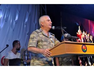 "En büyük asker bizim asker" sloganları ile konuşması sürekli kesilen Tümgeneral Veli Tarakçı vatandaşlarla omuz omuza olmaktan gurur duyduğunu belirterek, "Bu asker sizlerle omuz omuza olmaktan sizlerin bir neferi olmaktan gurur duyuyor. Bu millet 3 bin yıl içerisinde çok hain gördü. 3 bin yıl içerisinde çok düzenbazlıklar çok isyanlar gördü. Ama hiçbir isyan hiçbir kalkışma geçen seneki kadar bu millete zarar vermedi. O gün asker üniforması giymiş, benim üniformamı çalmış hainler, polisimin üniformasını çalmış hainler, yargı mensuplarımın cübbesini giymiş hainler, bürokrasinin çeşitli kademelerine sızmış hainler, bu milletin geleceğine tenezzül etmiş hainler hadlerini aşarak başarıya ulaşabileceklerini zanneden hainler, bu necip milletin sizlerin o yüreği büyük insanların önlerinde bir set gibi bir altın madeni gibi duracağınızı asla hesap edemediler. Türk Silahlı kuvvetlerinin yaklaşık yüzde 97'sinin de karşı olduğu, aramıza sızmayı başarabilen 3-5 başı bozuk maalesef şuanda hiçbir örneği görülmemiş şekilde 3 bin yıllık geleceğimize aykırı olarak tüyü bitmemiş yetimin hakkıyla elde edilen o mermilerini, alınan araçları maalesef kendi halkının kendi meclisinin üzerinde denediler. Ve karışılığını sizlerin sayesinde fazlasıyla gördüler. İnşallah görmeye de devam edecekler. Yüzyıllardır bu memleketin evlatları artık bu memleketin kadersizliğine dur diyecekler. Sizler sayesinde yıllardır bu bölgede oynanan oyunlar inşallah son bulacak. Yeter ki sınır içinde olan ağıtlar sınır dışında kahkahalara dönüşmeyecek. Türk silahlı kuvvetleri sizlerle beraber bu işi başaracaktır. Burada dinlediğimiz arkadaşlarımız bizim ümidimizi arttırdılar. Sizler böyle dik durdukça Türk Silahlı Kuvvetleri bırakın sizin yanınızda olmayı sizin en önünüzde olacak. Bu vatanın birliği ve beraberliği bu vatanın bekası için sizlerle el birliği ile çalışacağız. Ve inşallah bu toprakların beklediği huzuru getireceğiz. Tıpkı 1083'te olduğu gibi nasıl bu topraklarda bu hainlik başladıysa inşallah en kısa sürede gelecek sene bu terörün bu topraklarda kökünü kazıyacağız. Herkesin kalbi bu topraklara gelecek huzuru ve barışı bekliyor. Allah ezanların yüzü suyu hürmetine herkesin hayır dualarını ve bu terörün bitmesi dualarını kabul etsin" dedi.