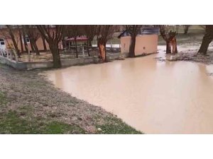 Sivas'ın Kangal ilçesinde sağanak yağış sonrası tarım arazileri ve bazı evlerin bahçeleri sular altında kaldı.