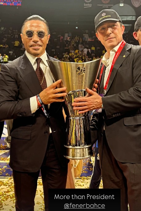 Nusret Gökçe'nin spor organizasyonlarında sahneye çıkması yeni bir durum da değil. 2017'de Fenerbahçe'nin şampiyonluğunda da benzer bir poz veren Gökçe, 2022 Dünya Kupası'nda Arjantin'in zaferinde sahaya inerek Messi ile kupa selfiesi çekmişti.