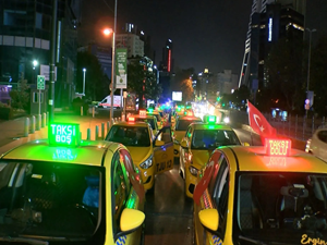 Şişli'de toplanan yüzlerce taksici, araçlarına astıkları Türk bayrakları ile konvoy halinde Yenikapı Etkinlik Alanı'na geldi.