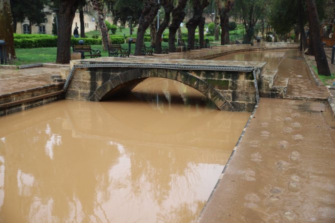 Kentte dün akşam saatlerinden itibaren etkisini sürdüren sağanak, merkez Eyyübiye ilçesinde bulunan tarihi Balıklıgöl yerleşkesinde su taşkınına sebep oldu.