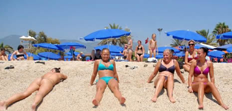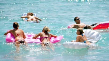 Hava sıcaklığının 35, deniz suyu sıcaklığının 27 derece ölçüldüğü, nem oranının ise 71 olarak kaydedildiği Antalya'nın Alanya İlçesi'nde tatilciler serinlemek için sahilleri ve su parklarını doldurdu. Dünyaca ünlü Damlataş ve Kleopatra Plajı'nda denize giren turistler, serinlemeye çalıştı. Dalgalı denizde kulaç atan turistler, bu anın tadını çıkardı. Denizden çıkar çıkmaz soluğu duşların altında alan tatilciler, sıcak kumlara uzanarak üstsüz güneşlenmeyi tercih etti.