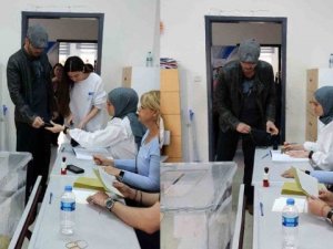 Okulda oy kullanmaya gelen Kıvanç Tatlıtuğ’u gören hayranları, fotoğraf çekti. Kıvanç Tatlıtuğ ve eşi Başak Dizer Tatlıtuğ, daha sonra okuldan ayrıldı.