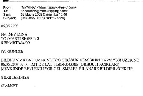 ZEYNEP G kaptanının gemi armatörüne gönderdiği mesajda korsanların Djibouti açıklarında seyir yapılırken, bir İngiliz gemisine saldırarak ele geçirdiği kaydedildi.