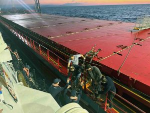 Ticari gemide rahatsızlanan şahıs kıyıda bekleyen sağlık kiplerine teslim edildi.