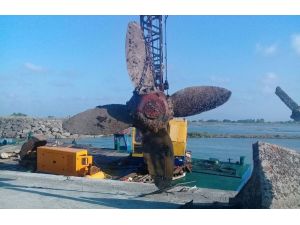 Samsun'un Bafra ilçesinde, Osmanlı donanmasının tarihi buharlı nakliye gemisi "Tirimüjgan Batığı'nı çıkartma çalışmaları başlatıldı.