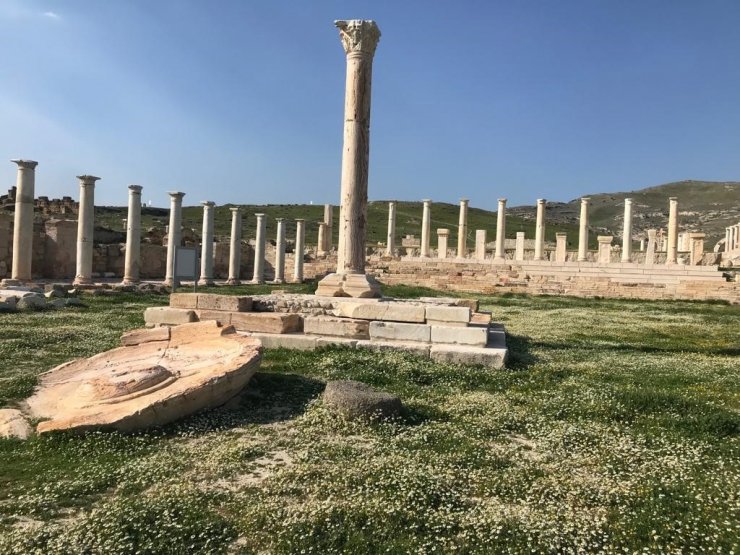 Denizli'de tarih ve doğanın iç içe olduğu Tripolis antik kenti, baharın gelmesiyle yerli ve yabancı misafirlerini görünüşüyle cezbediyor.