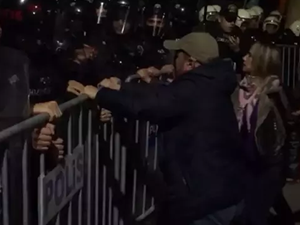 Belediye binasının önünde toplanan kalabalık sloganlar atarak kayyum kararına tepki gösterdi. Kalabalığın içinden bir grup ise polis barikatlarını aşmak istedi. Çevik Kuvvet ekiplerinin izin vermemesi sonucu arbede yaşandı.