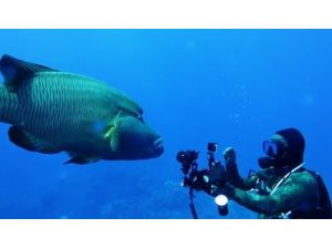 Sadece yabancı turistlerin değil Türk dalış tutkunlarının da gözde noktalarından biri haline gelen Kaş'ta yine renkli görüntüler ortaya çıktı. Kaş açıklarında serbest dalış yapan bir grubun sürpriz balıklarla görüntüleri aksiyon kameralarına yansıdı. Meraklı gözlerle inceleyen sevimli balık, dalgıçlara keyifli anlar yaşattı. Orfoz ve Napolyon balıkları dalgıçlarla adeta oyun oynadı, kameralara poz verdi. Tombul balığın kendisini görüntüleyen dalgıca öper gibi yaklaşımı ise izleyenleri gülümsetti.