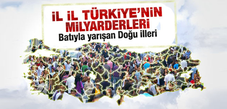 Diğer illerin milyarder sayısı ise şöyle; Artvin 5, İzmir 2, Mersin 1, Nevşehir 1, Erzincan 3, Denizli 1, Sivas 2, Elazığ 1, Gümüşhane 1, Diyarbakır 1,Kastamonu 2, Eskişehir 2.