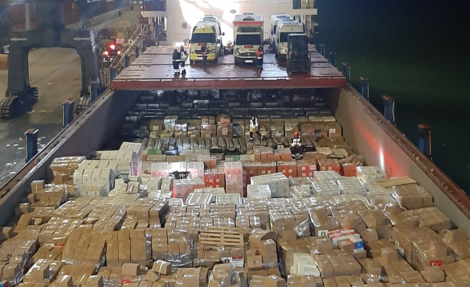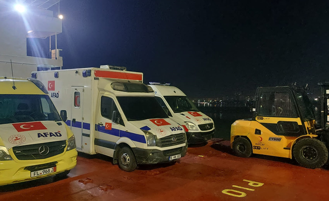 Tüm ambarları dolu şekilde yola çıkan gemiyle konserve yemek, gıda ve hijyen malzemesi, katlanır konteyner, çadır, uyku tulumu, battaniyeden oluşan yaşam malzemesi, kıyafet, 6 ambulans, forklift ile çeşitli tipte jeneratörler gönderiliyor.
