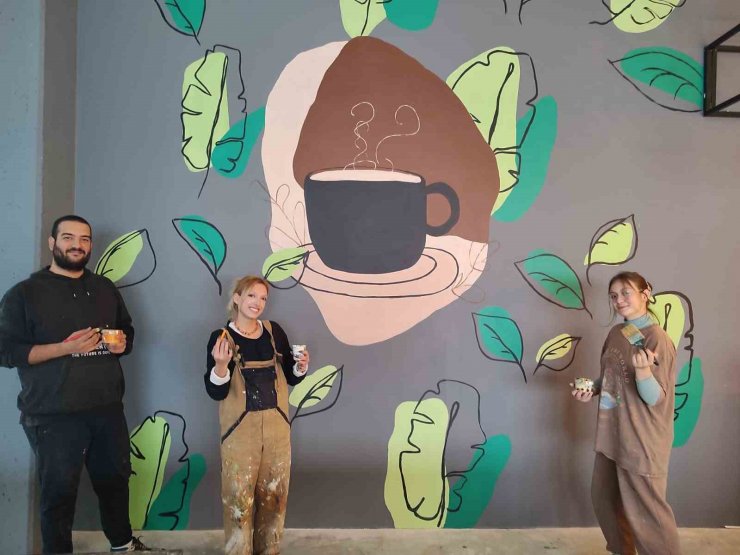 Denizli'de resim öğretmenliği 3. sınıf öğrencileri, derslerde gördüğü tekniklerle dev duvarları tuval gibi kullanıp sanat eserine dönüştürüyor.
