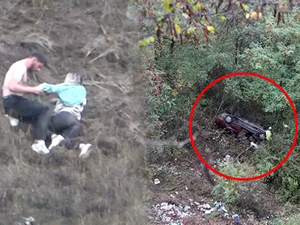 Uçuruma düşen otomobilden sağ çıktılar, 200 metrelik uçurumda kurtarılmayı beklediler